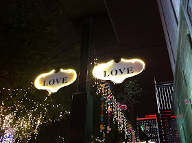 信義區沿著松智路的大樓走,中間懸吊著可愛的LOVE,